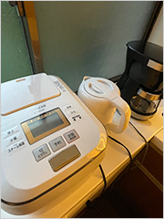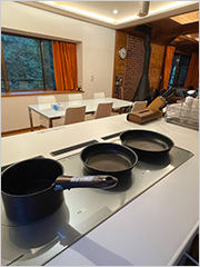その他、冷蔵庫やオーブンレンジ、調理器具やお皿などの備品も一式揃っていて、すぐに別荘ライフをスタートすることができます。