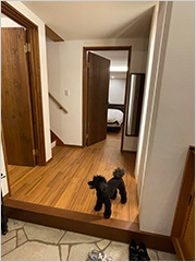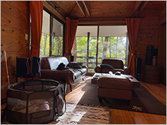 広〜い主寝室のベッドはクイーンサイズ×2台!落ち着いたソファセットと木のぬくもりがあるリビングの横には広々IH3口のカウンターキッチン。そして嬉しい全室床暖房完備!この床は犬が滑りにくい天然木のフローリング素材になっていて、とっても助かりました。