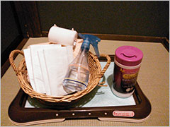 部屋は10畳と書いてあったが、それ以上と思える広さだ。嬉しいことにワンコアメニティが充実している。ワン匂いも無いのか、愛犬のクンクン探検はすぐに終了した。 |