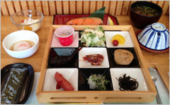 夕食同様に見た目もきれいな盛り付けで、品数も多くボリューム・味ともに満足な朝食でした 女性には多くて食べきれないくらいです。 |
