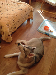 お散歩の後は中型犬以上のドッグランで遊ばせました。 ハスキー9ヵ月でしたが、充分に走る広さがありましたし、ボールや、遊具でも楽しく遊びました。 ドッグランの中には屋根付きのバーベキュー施設もあり、予約をすればバーベキューも頂けるそうです。 |