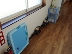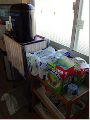 犬用のシーツや、レンタルできるトイレトレーなどが置いてあります。 また冷蔵庫もあり、犬のお水やご飯を入れておくこともできます。電子レンジもありますで、こちらも犬のご飯の温めなどに利用できます。 |