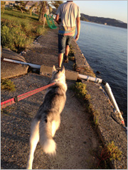連れていた犬を遊ばせてあげたかったので、翌朝は5時半に起きて少しお散歩しました。 こちらのペンションは、浜名湖に隣接していて朝日がとてもきれいに見えます。 ペンション周辺の湖畔を歩くのがとても気持ち良かったです。残念ながら、前日に夕日は見れなかったのですが、恐らく朝日同様にきれいだと思います。 |