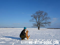 天気は快晴。キリっとした冬の北海道の空気の中、めいを宿の前で朝食前の軽い運動をさせました。楽しそうに昨日降り積もったフカフカの雪を楽しんでいます。雪が降っている時や突風が吹いている時は嫌いなようですが、穏やかな天気の時は、雪が楽しいようでした。