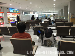 先に荷物を預け、めいを預けるのは時間ぎりぎりまで待機しました。できるだけ預ける時間を減らそうと出発30分前まで待ってからカウンターへ。めいは何事が起こっているのかわからないような顔です。大丈夫だよ、あとでね、と声をかけて、飼い主は搭乗ゲートへ向います。